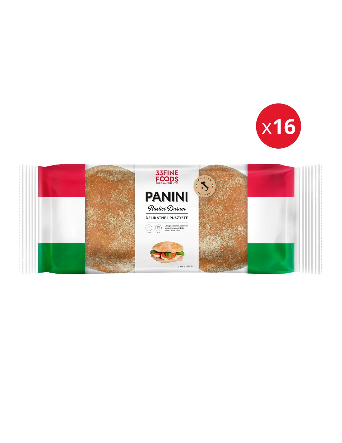 - 16 opakowań po 2 sztuki Panini Rustici Durum